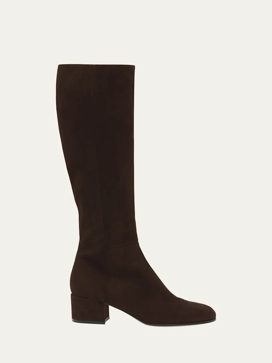 Gianvito Rossi soft suede knee boots 1.75 in / 45 mm block heel Round toe Side zip eases dress Lining: Leather Leather outsole Spot clean Made in Italy