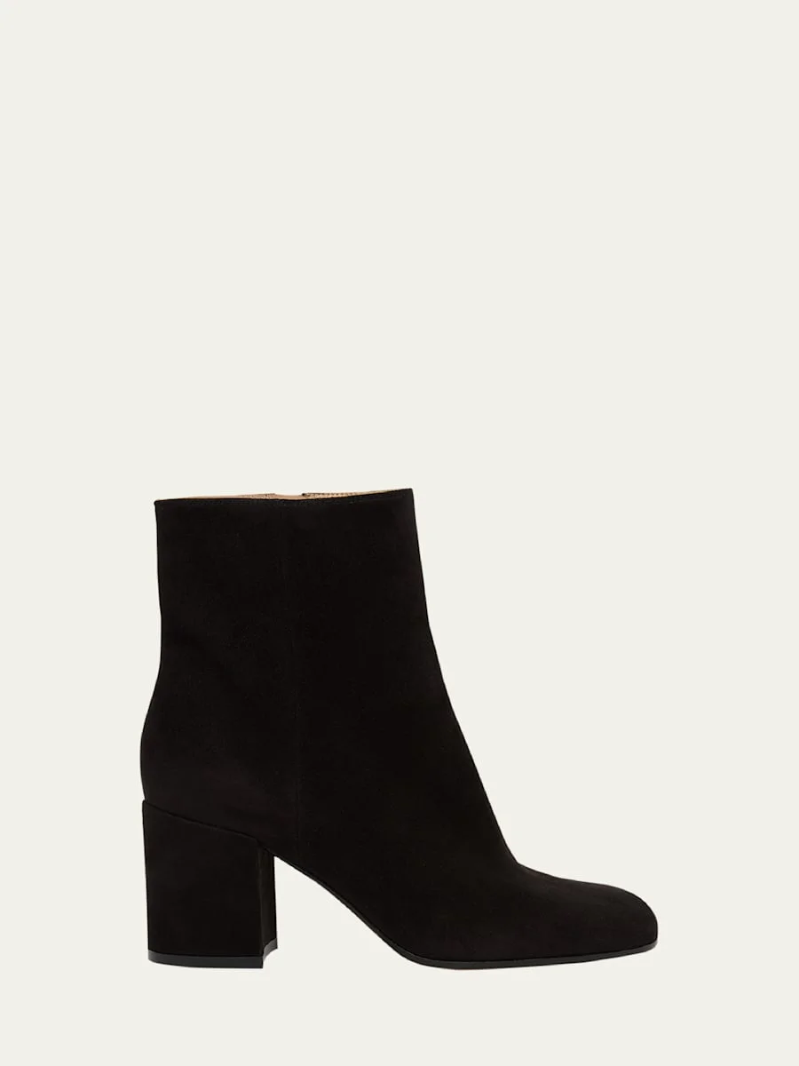 Gianvito Rossi "Joelle" suede ankle booties 2.75 in / 70 mm block heel Round toe Side zip eases dress Smooth sole Made in Italy Online Inquiries: BGS21_X6N48| Store Inquiries: #4838516