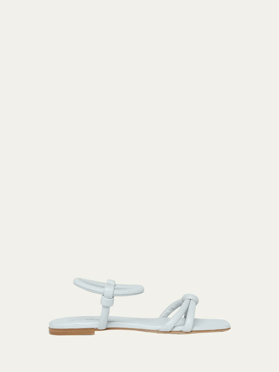 Gianvito Rossi "Juno" tubular padded calf leather sandals 0.17 in / 5 mm flat heel Open toe Knotted vamp Slipon ankle strap Leather outsole Lining: Unlined Made in Spain