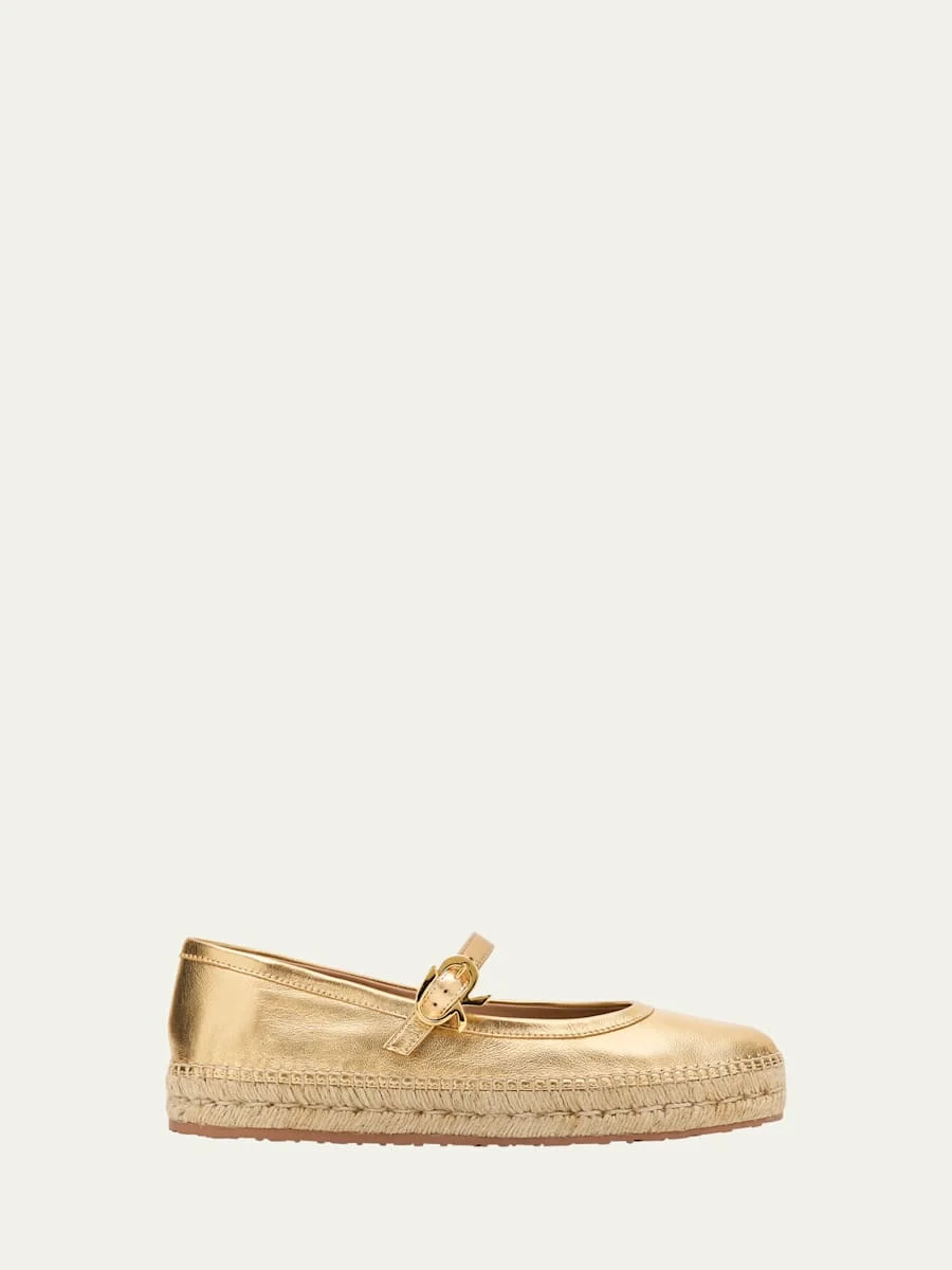 Metallic Leather Mary Jane Espadrilles