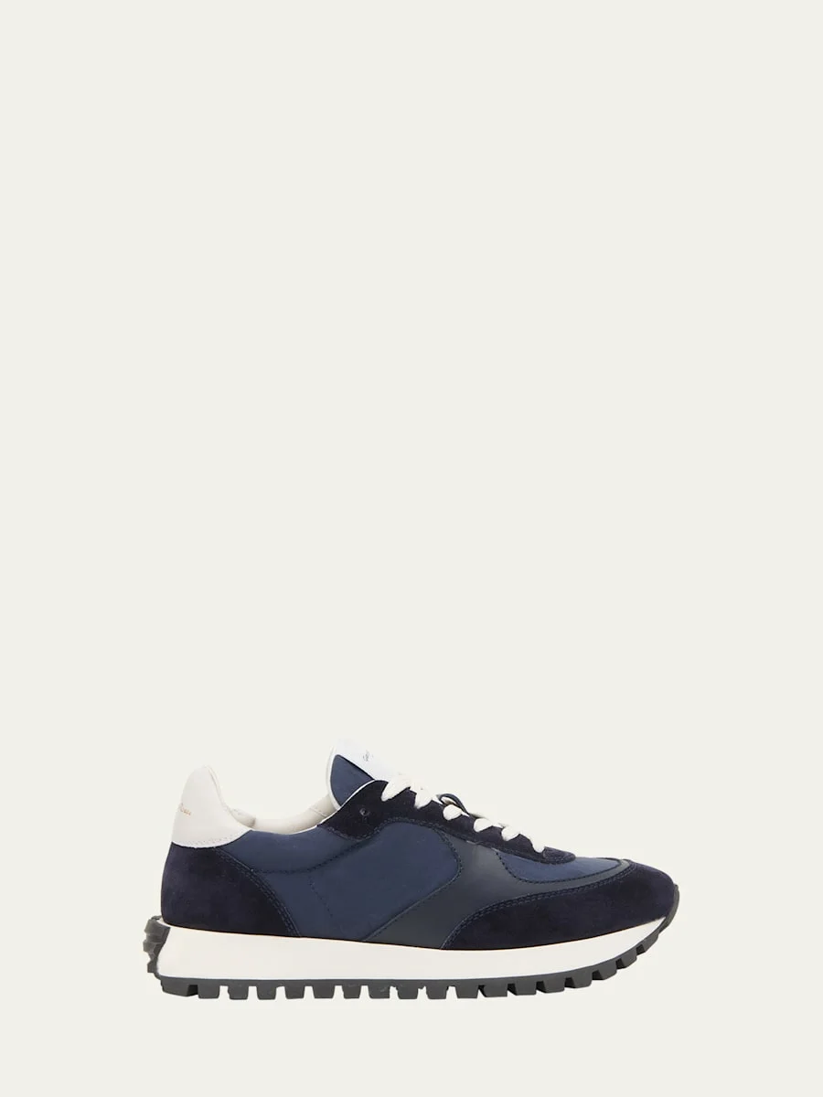 Gianvito Rossi leather, suede and fabric retro runner sneakers Flat heel Round toe Lace-up vamp Cushioned footbed Rubber outsole Lining: Leather Spot clean Made in Italy Online Inquiries: BGS21_X6B7E| Store Inquiries: #4652486