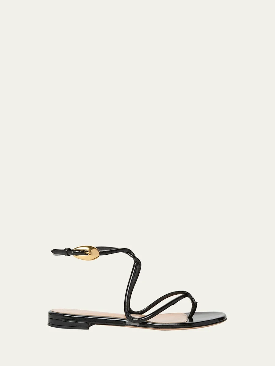 Gianvito Rossi flat sandals in napa leather 0.17 in / 5 mm stacked heel Open toe Twisted thong strap Adjustable ankle strap Leather lining and outsole Spot clean Made in Italy Online Inquiries: BGS21_X6TXA| Store Inquiries: #4966982