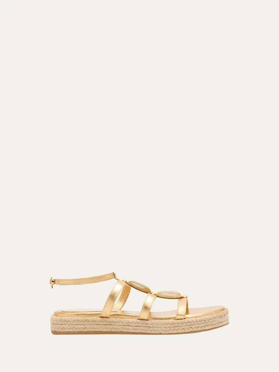 Stone Metallic Leather Espadrille Gladiator Sandals
