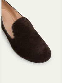 Outlined with tonal smooth leather piping, these loafers by Gianvito Rossi are crafted from supple Italian suede 0.17 in / 5 mm flat heel Round toe Notched vamp Slipon style Made in Italy