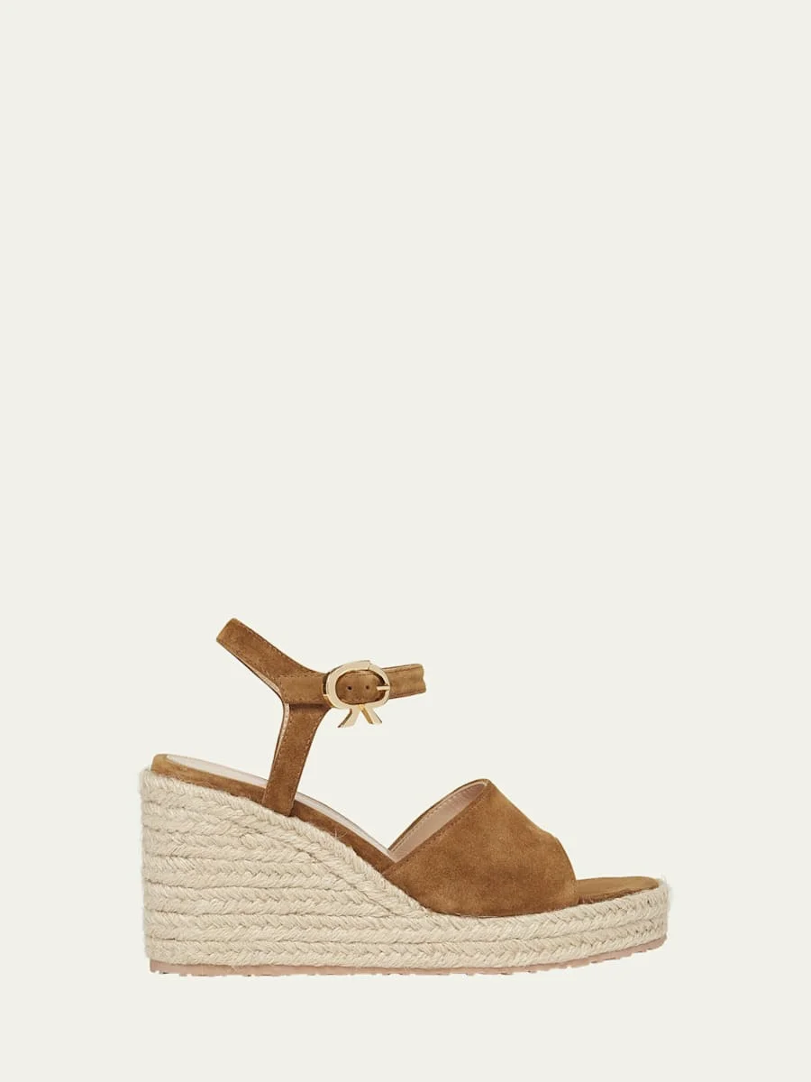 Gianvito Rossi soft calf suede espadrille sandals 2.36 in / 60 mm braidedjute wedge heel Open toe Adjustable ankle ribbon buckle Leather outsole Lining: Leather Made in Italy