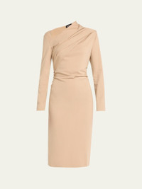 Giorgio Armani jersey dress with draped detailing Asymmetric neckline Long sleeves Hem hits around the knee Body-skimming silhouette Zip closure Viscose/nylon/polyamide/elastane Dry clean Made in Italy Online Inquiries: BGS21_T68SP| Store Inquiries: #4932054