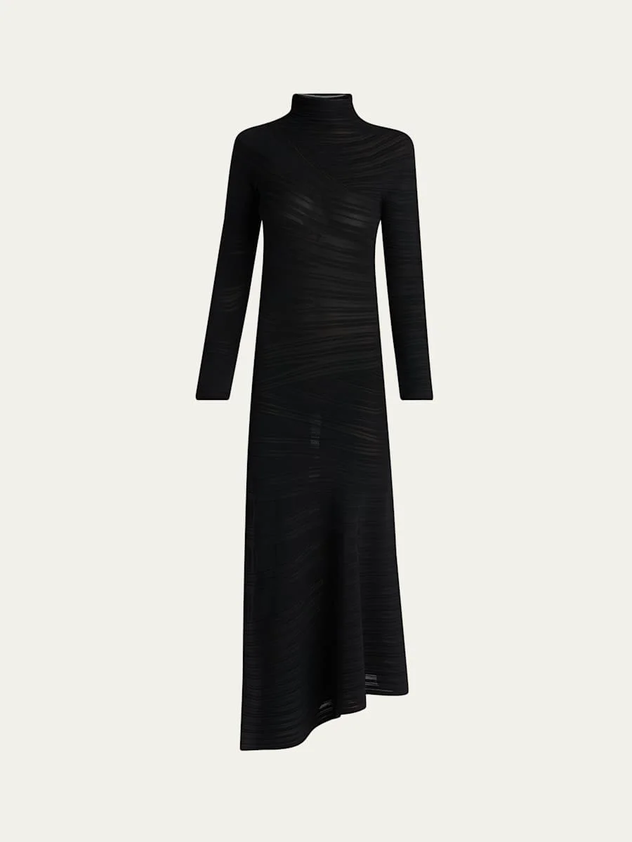 Asymmetric Tonal Striped Jersey Mock-Neck Midi Dress