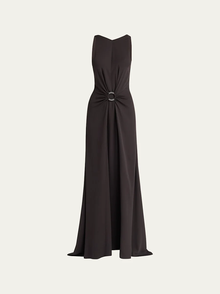 Beaded-Ring Silk Georgette Backless Gown