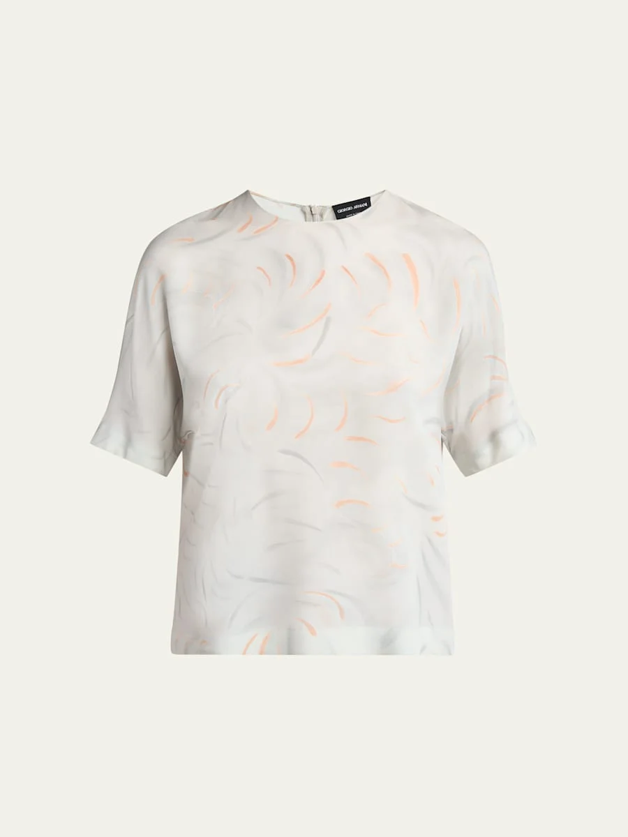 Giorgio Armani blouse in brushstroke print Crew neckline Short sleeves Straight fit Zip closure Silk Dry clean Made in Italy Online Inquiries: BGS21_T6BX0| Store Inquiries: #4957312