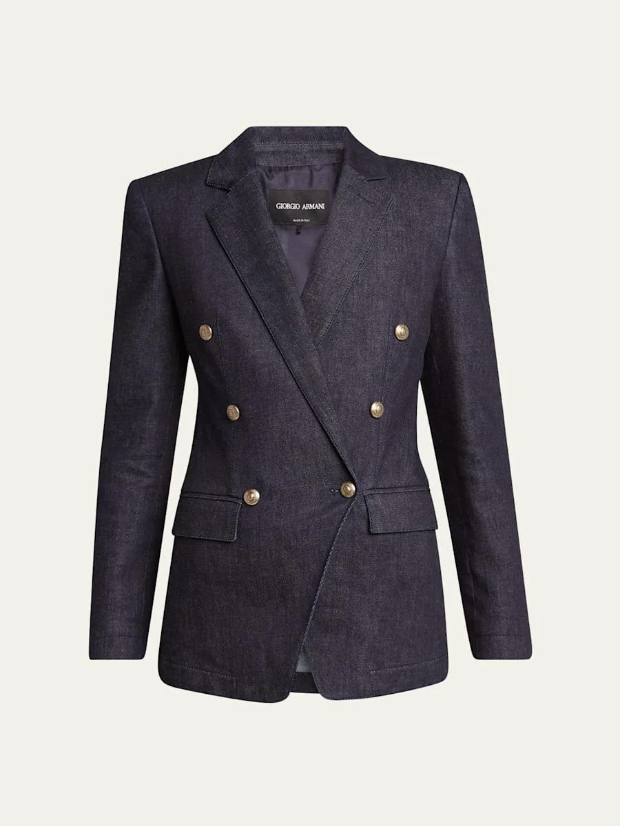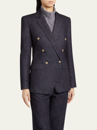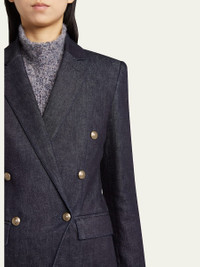 Cotton-Cashmere Denim Double-Breasted Blazer