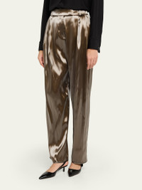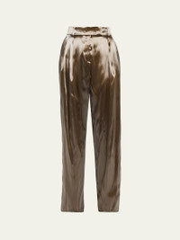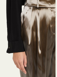 These trousers by Giorgio Armani are tailored from liquid silk with double front pleats that add movement Highrise waistband Side slant pockets Single back welt pocket Full length Relaxed legs Concealed hookandzip fly; belt loops Silk/nylon/polyamide Dry clean Made in Italy