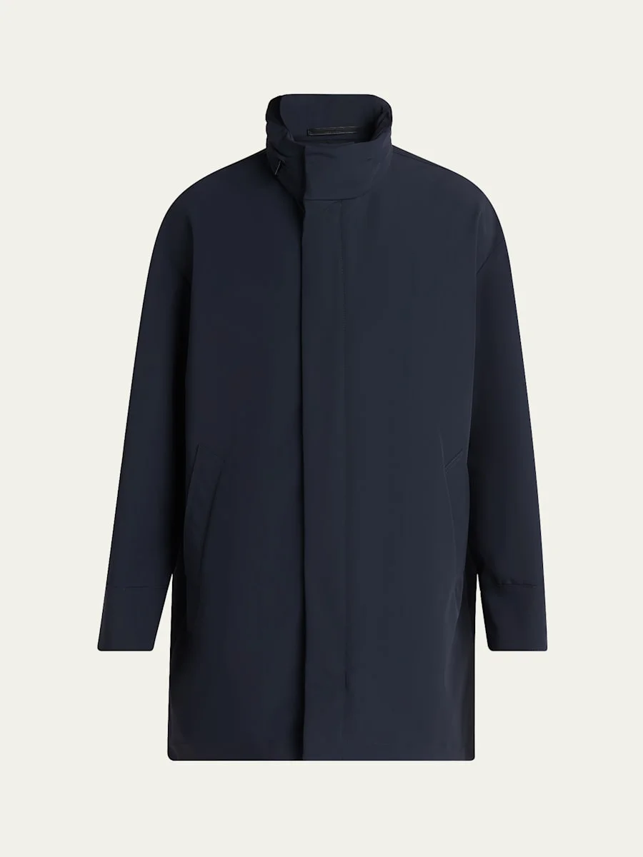 Giorgio Armani caban coat in weatherresistant nylon Funnel neckline Concealed zip closure Broad welt pockets Long sleeves Dry clean Made in Italy