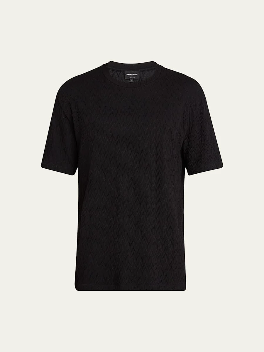Giorgio Armani Tshirt in raised chevron pattern Crew neckline Short sleeves Pullover style Viscose/nylon/polyamide Dry clean Made in Italy