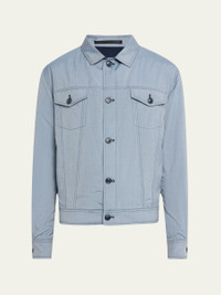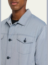 Giorgio Armani blouson in faded denim for a relaxed look with premium fabrication Shirt collar Button front Buttoned chest flap pockets Long sleeves Singlebutton cuffs Back yoke Silk/polyester Dry clean Made in Italy