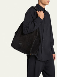 Giorgio Armani tote bag in split leather Embossed leather logo patch on the front Adjustable leather top handles Open top Interior, one zip pocket Leather lining Approx. 15.0"H x 15.8"W x 8.66"D Dry clean Made in Italy Online Inquiries: BGS21_NCR7S| Store Inquiries: #4934604