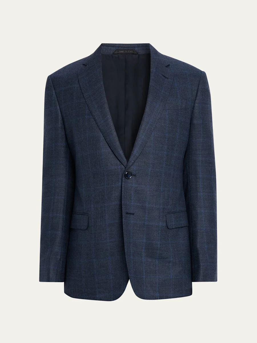 A subtle grid is woven into this Giorgio Armani superior woolblend sport coat. Peak lapels Twobutton front Chest welt pocket Interior logo tag and pocket Side flap pockets Doublevented back Virgin wool/viscose Dry clean Made in Italy