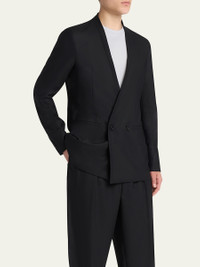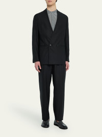 Giorgio Armani "Upton" suit in tonal microcheck Viscose Dry clean Made in Italy Jacket: V neckline Doublebreasted button closure Side welt pockets Interior welt pocket Fourbutton sleeve finish Doublevented back Trousers: Regular rise Pleated front Side slip pockets Back welt pockets Full length Unfinished hem to be tailored to desired length