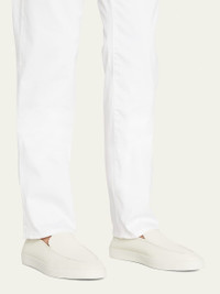 Giorgio Armani sneakers in tonal lambskin leather with woven accent Flat heel Round toe Notched vamp Embossed logo at back midsole Slip-on style Leather lining Made in Italy Online Inquiries: BGS21_N92R7| Store Inquiries: #4274315