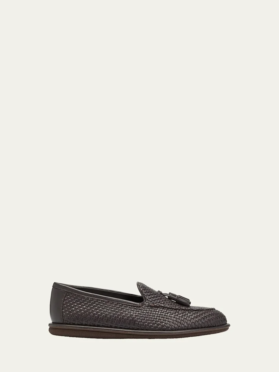 Men's Woven Leather Tassel Loafers
