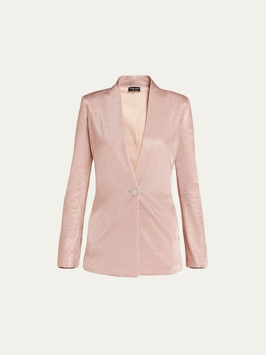 Giorgio Armani metallic bonded jersey blazer Stand collar; singlebutton front Long sleeves Tailored fit Viscose/polyester/elastane Dry clean Made in Italy