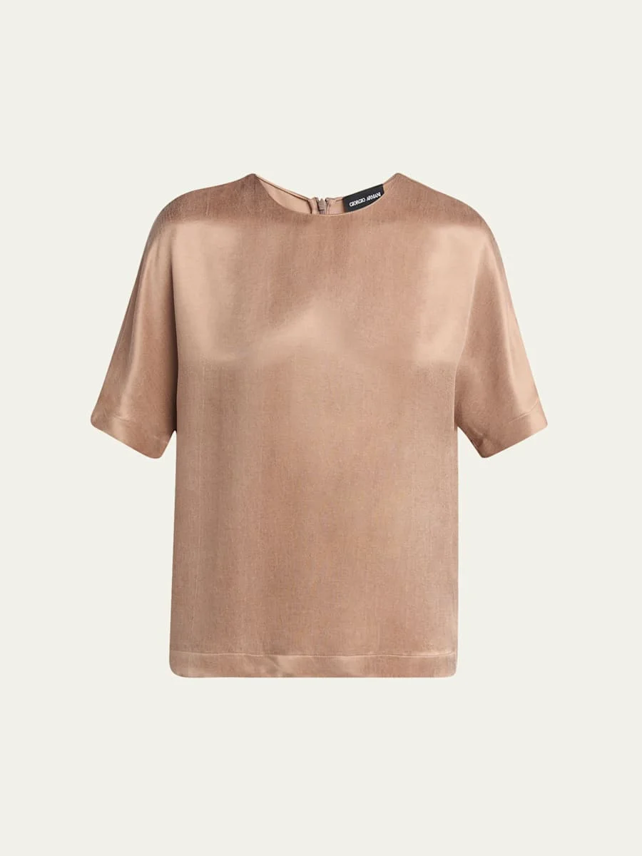 Giorgio Armani solid top Crew neckline Short sleeves Relaxed fit Back zip Viscose/cupro Dry clean Made in Italy Online Inquiries: BGS21_T6BWS| Store Inquiries: #4957297