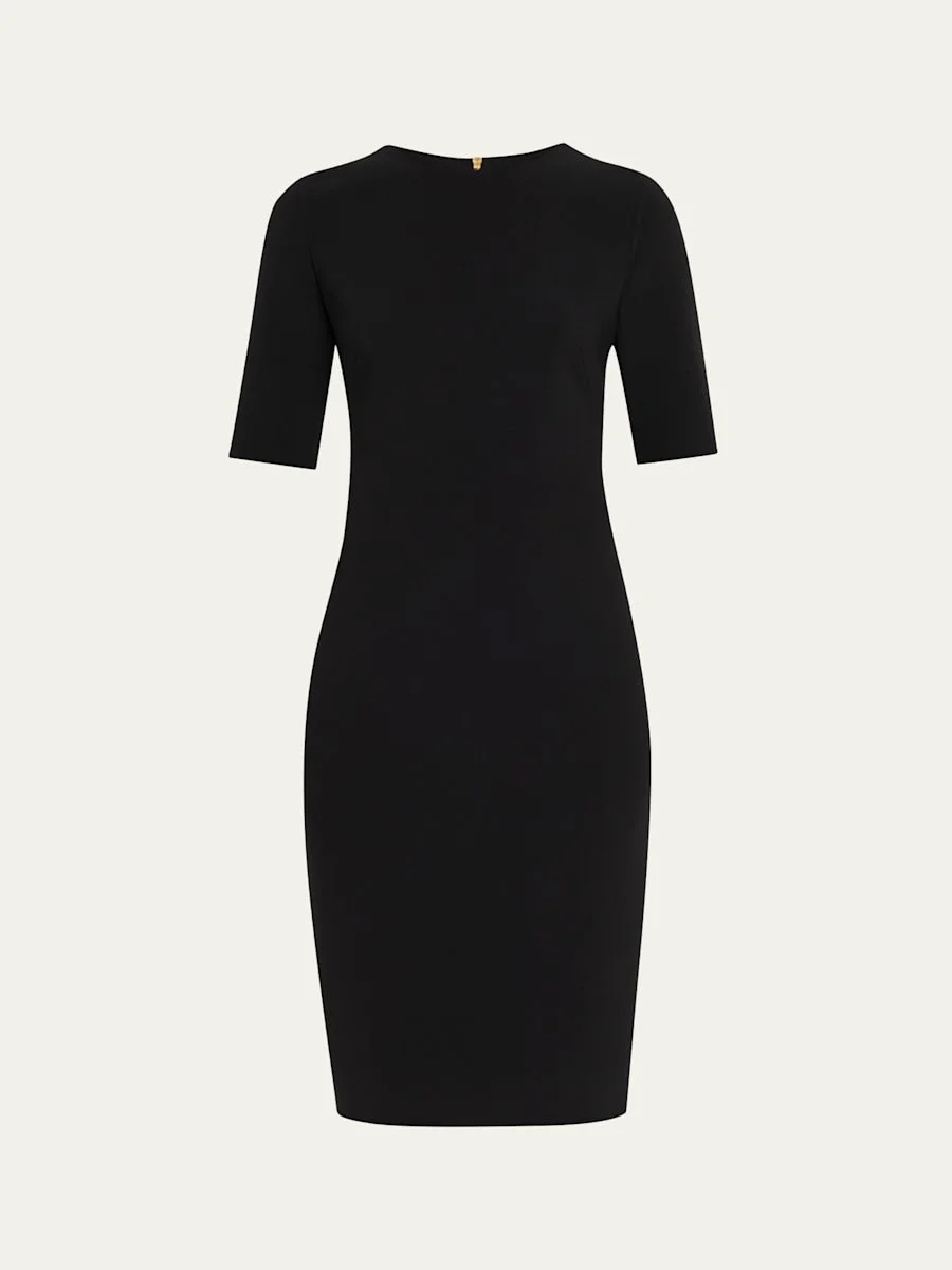 Short-Sleeve Wool Crepe Stretch Dress