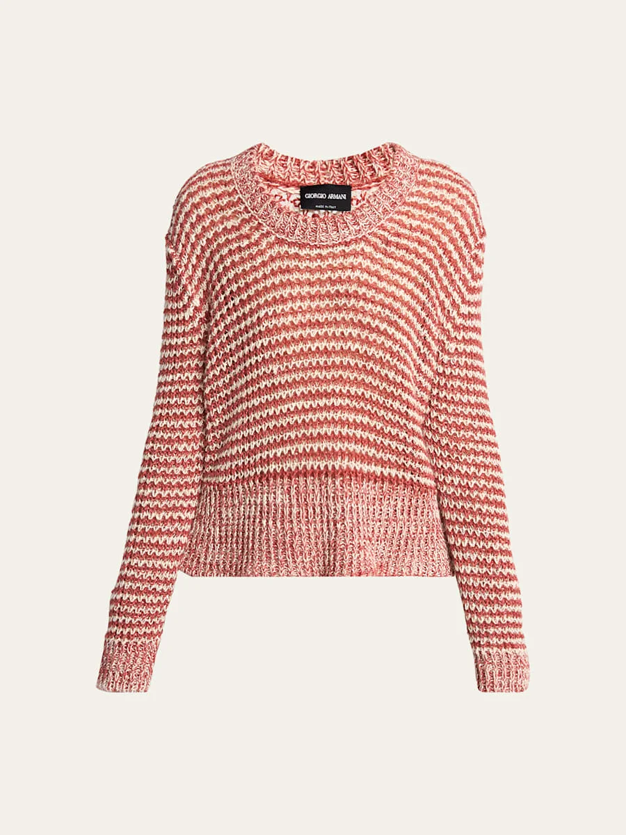 Striped Linen Open-Knit Crewneck Sweater