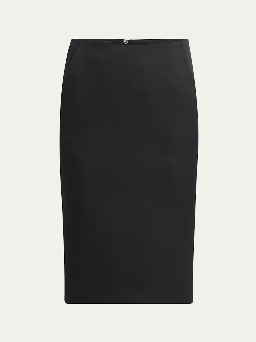 Giorgio Armani structured skirt crafted from techno scuba fabric Sits high on the waist Hem hits around the knee Pencil silhouette Side pockets Back zip Polyester Dry clean Made in Italy Online Inquiries: BGS21_BA3HD| Store Inquiries: #5025058