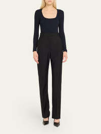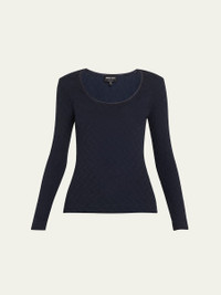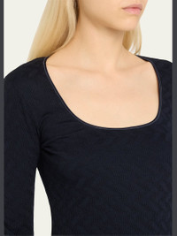 Giorgio Armani t-shirt crafted from textured jersey fabric Scoop neckline Long sleeves Hip length Slim fit Pullover style Viscose/nylon/polyamide Dry clean Made in Italy Model is 5'10"/177cm. Online Inquiries: BGS21_T5V30| Store Inquiries: #4833451