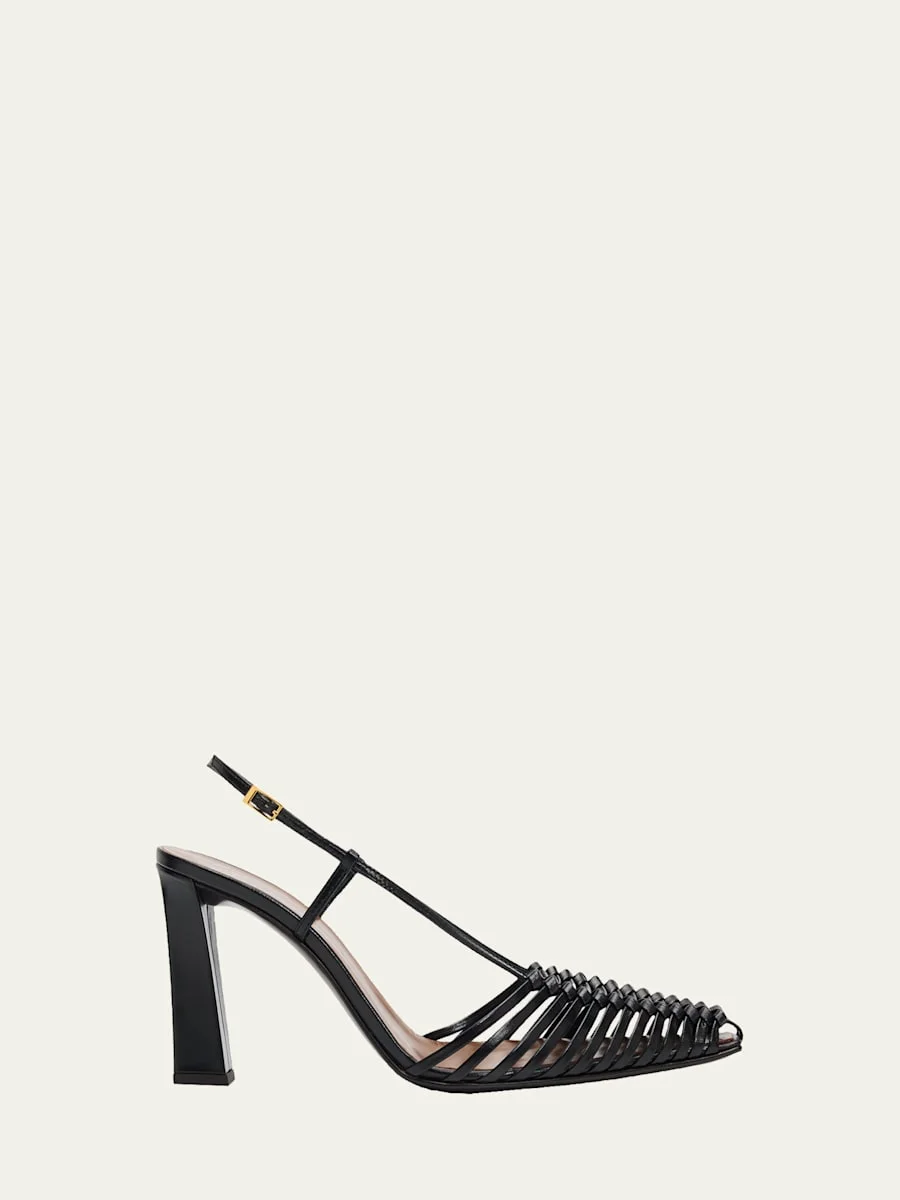 90mm Woven Leather Slingback Pumps