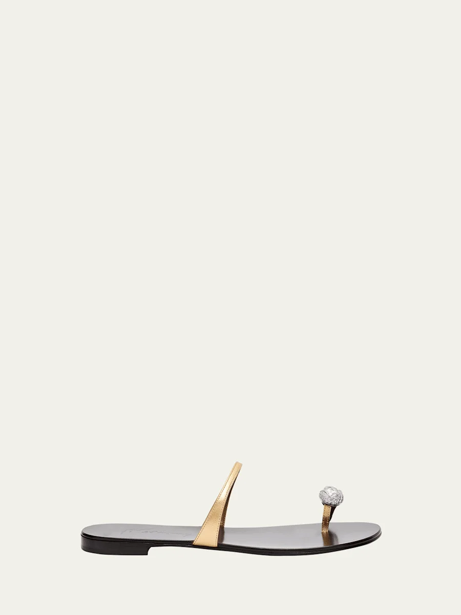 Giuseppe Zanotti sandals in leather with crystal jewelry Part of the 30th Anniversary Collection Flat heel Mid vamp band Slide style Leather outsole Lining: Leather Spot clean Made in Italy