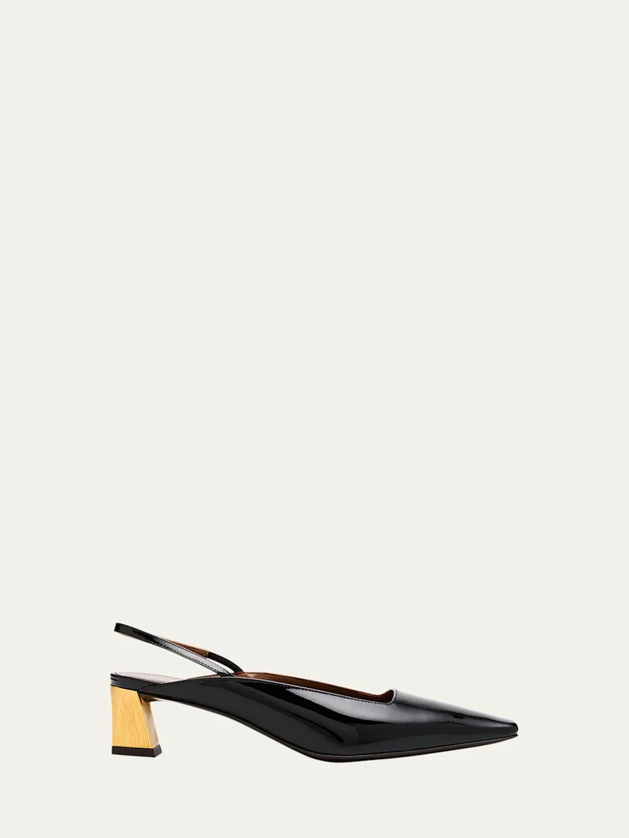 Giuseppe Zanotti pumps in shiny patent leather with a contrasting heel 1.75 in / 45 mm block heel Pointed toe Elastic slingback strap Leather lining and outsole Made in Italy Online Inquiries: BGS21_X6V85| Store Inquiries: #4990909