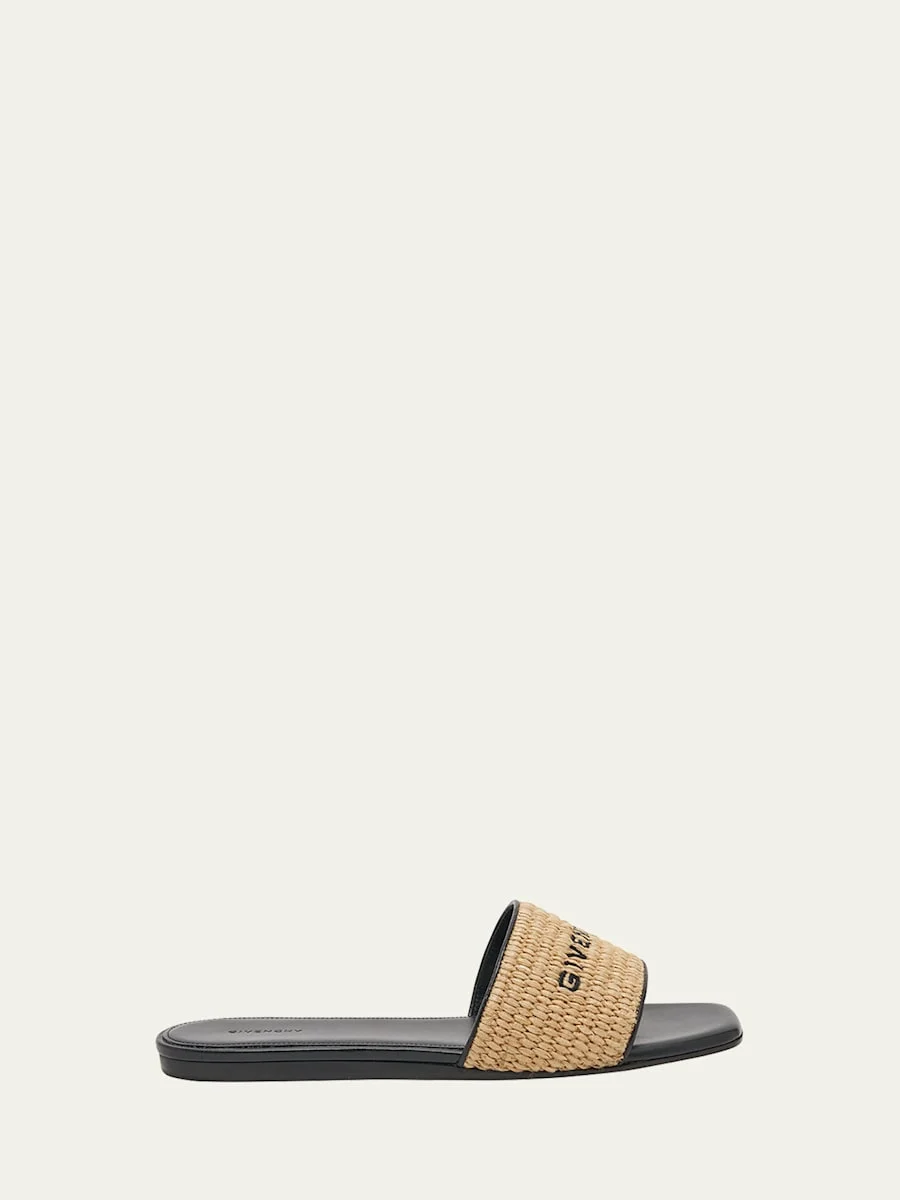 Givenchy "4G" sandals in raffialike cotton and nylon Flat heel Open toe Single band vamp with logo Lining: Goat leather Slide style Made in Italy