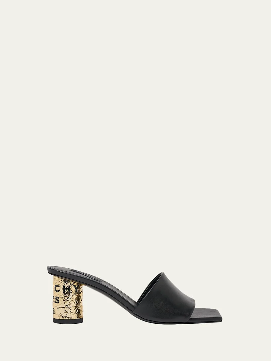 These mules from Givenchy are crafted from smooth Italian calfskin leather atop a golden wrapped heel with signature logo detailing 2.50 in / 65 mm block heel Square toe Wide band upper Easy slide style Leather lining Rubber outsole Made in Italy