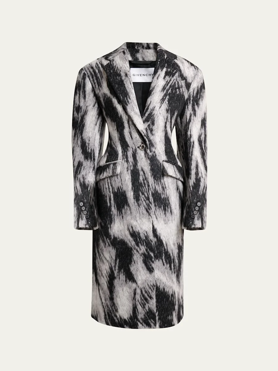 Givenchy wool and animal hair cocoon coat finished with a singlebreasted front Notch lapels Structured shoulders Long sleeves with button cuffs Cinched waist Flap pockets Tailored silhouette Walking vent Buttonfront Wool/animal hair Professional cleaning recommended Made in Italy