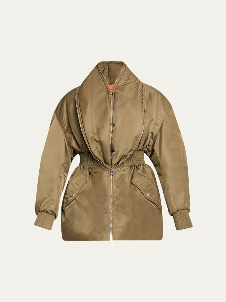 HOURGLASS BOMBER WITH ZIPPED SHAWL COLLAR IN NYLON