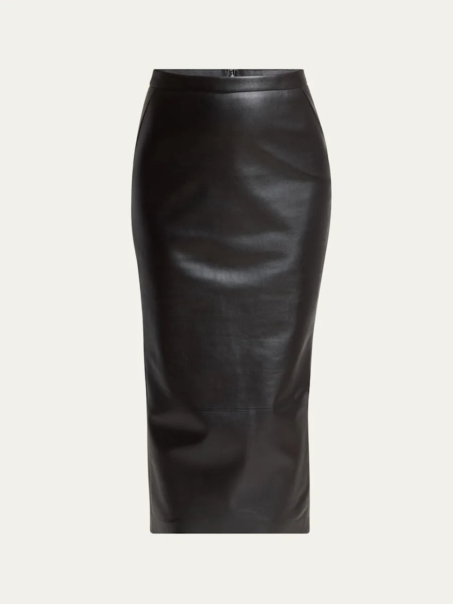 MID-LENGTH KICK BACK SKIRT IN NAPPA LEATHER