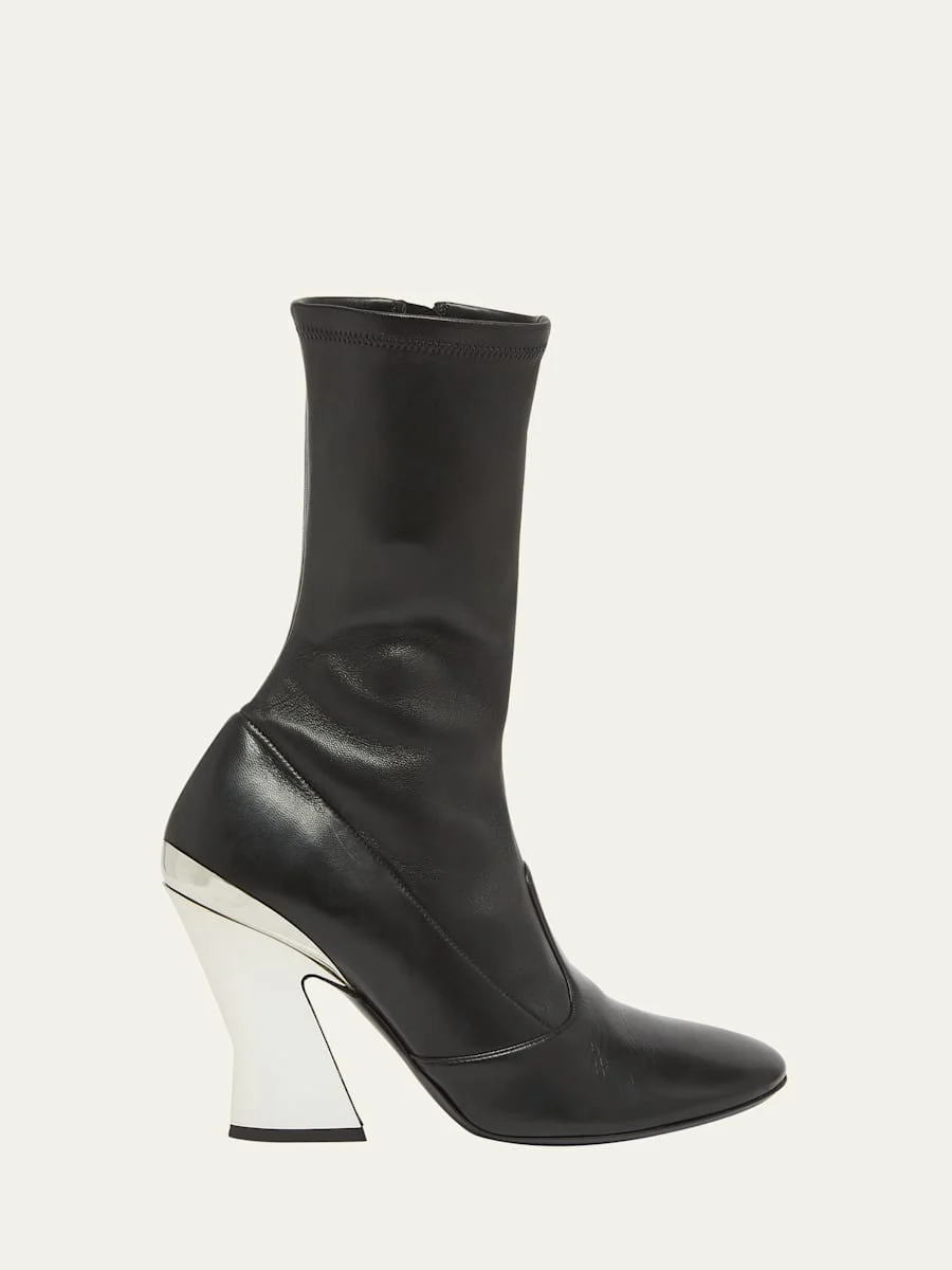 Leather Metallic Sculpted-Heel Ankle Booties