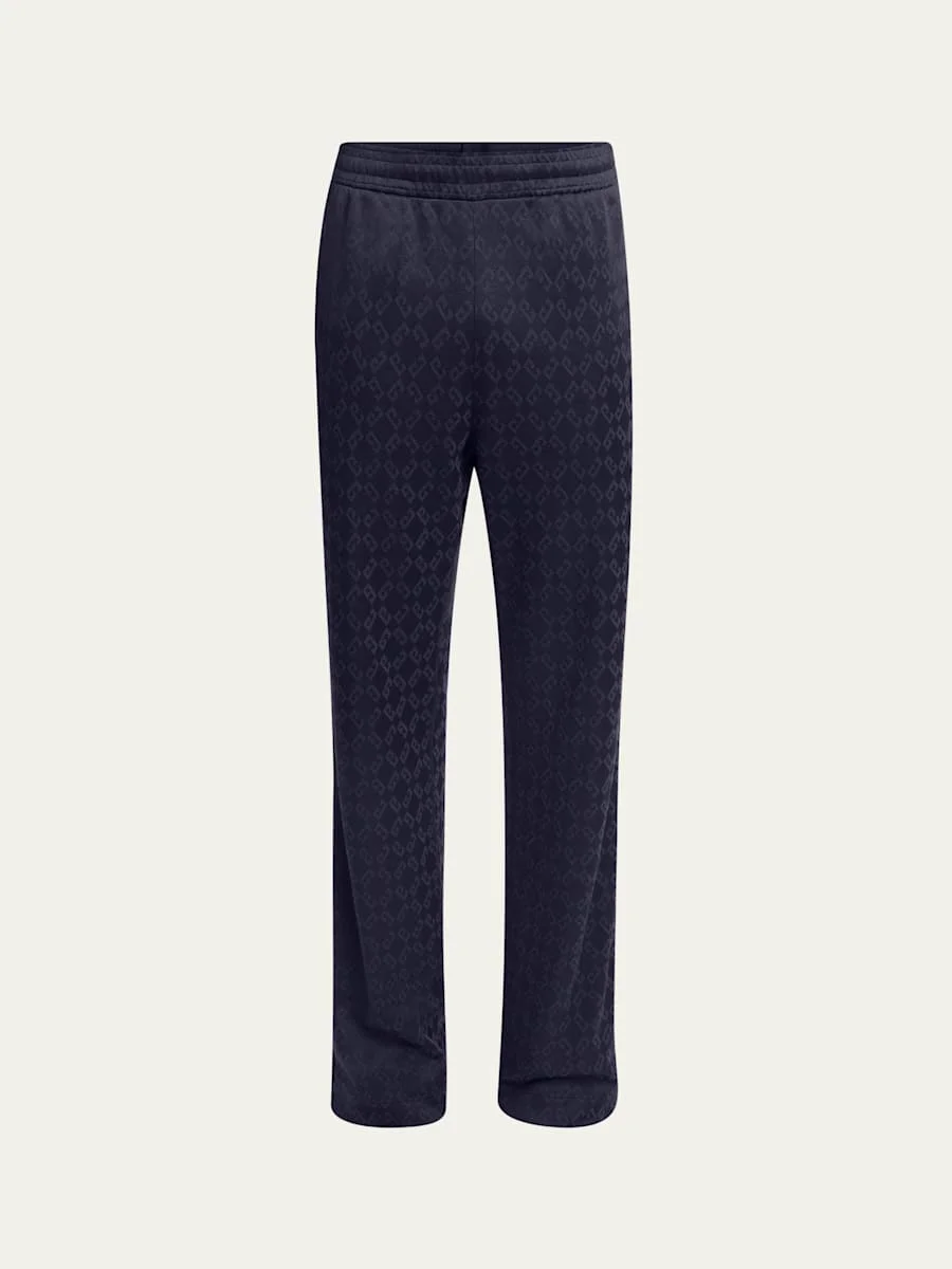 Givenchy jersey track pants with allover 2G pattern Elasticized waist Side slip pockets Back welt pocket Full length Relaxed fit; straight legs Polyester/cotton Made in Italy Model is 6'1"/185cm. Online Inquiries: BGS21_NCDUD| Store Inquiries: #4863243