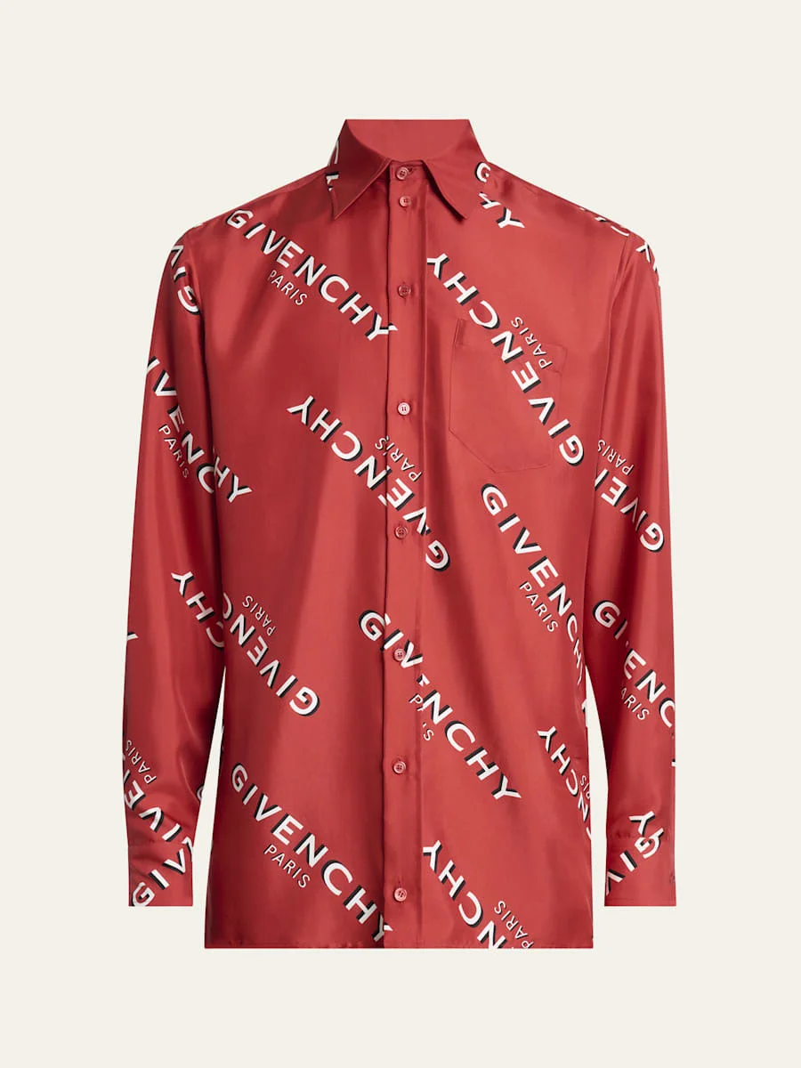 Men's Diagonal-Logo Silk Shirt