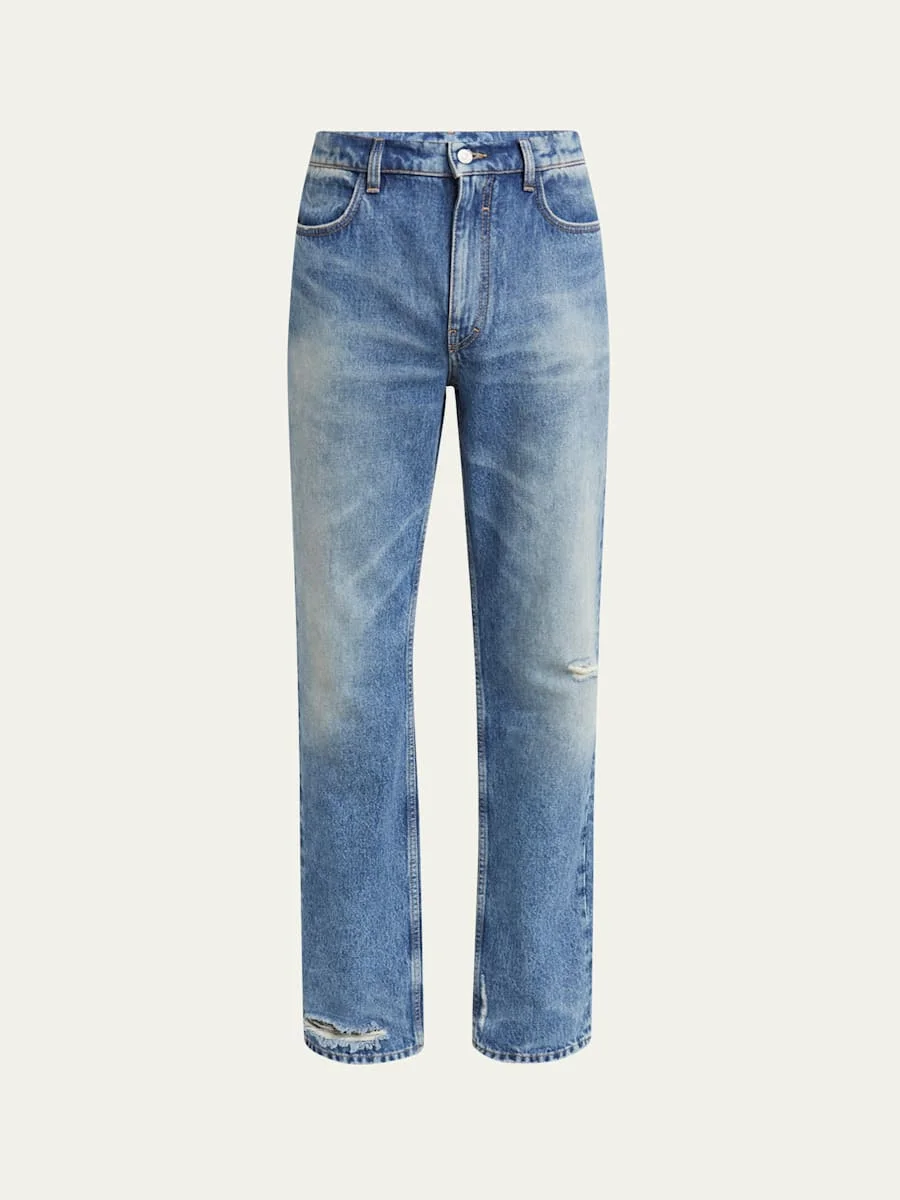 Givenchy jeans in medium-wash denim with fading and distressing Regular rise Five-pocket style Full length Straight legs Triacetate/polyester Made in Portugal Model is 6'1"/185cm. Online Inquiries: BGS21_NCLPJ| Store Inquiries: #4912917