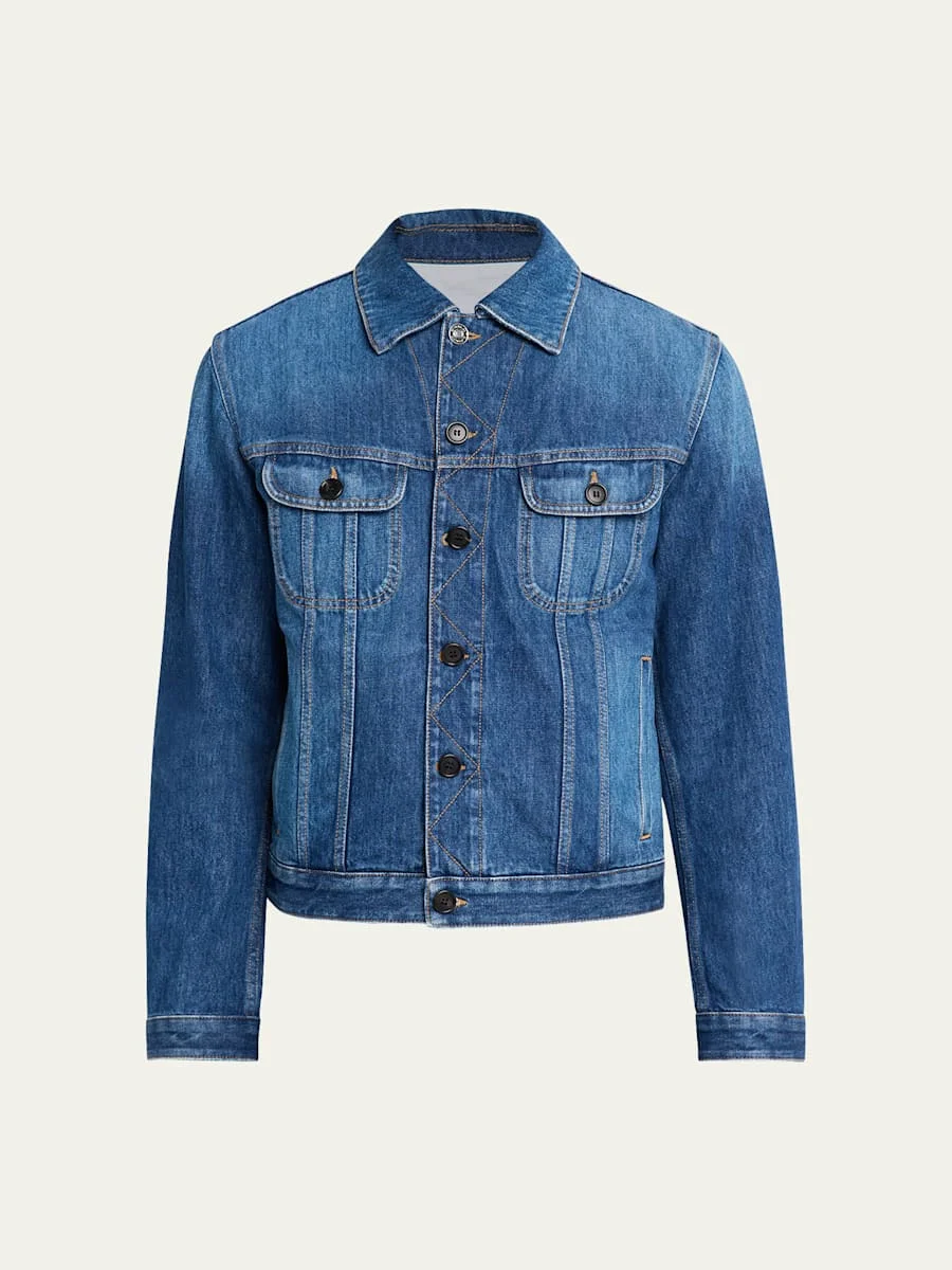 This Givenchy denim jacket is crafted in medium blue denim, showcasing the GIVENCHY Paris leather patch on the back yoke. Point collar Button front Chest flap pockets Side welt pockets Buttoned cuffs Logoengraved single button Hem adjusters Polyester/wool Machine wash cold Made in Italy