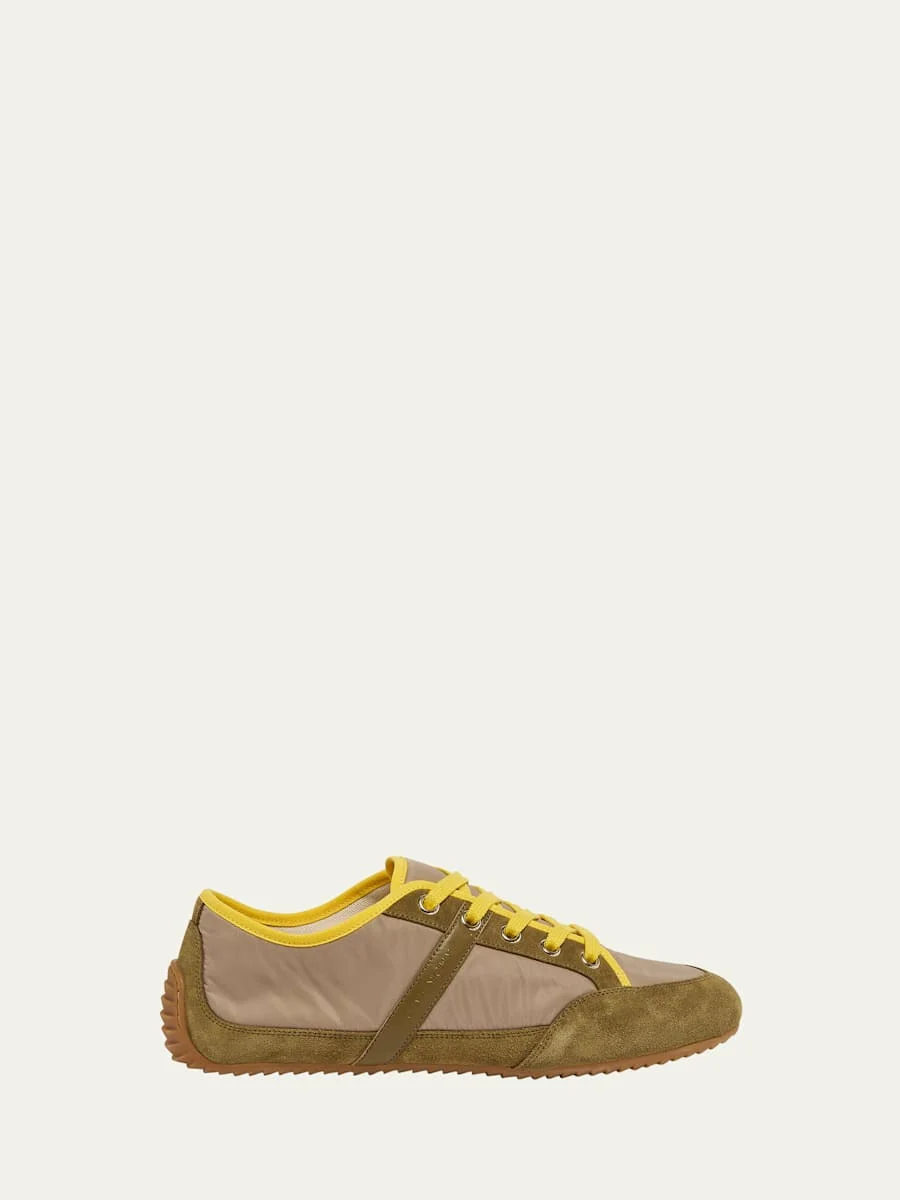Men's Slim Nylon and Suede Low-Top Sneakers