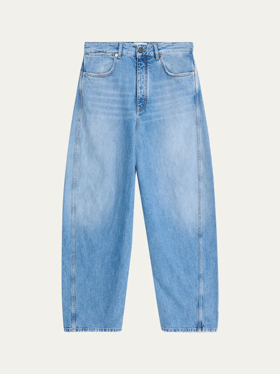 Givenchy jeans are crafted from light stonewashed denim accented with a leather logo patch on the back and slight fading and whiskering Regular rise Fivepocket style Curved barrel legs Full length Button/zip fly; belt loops Cotton Made in Italy