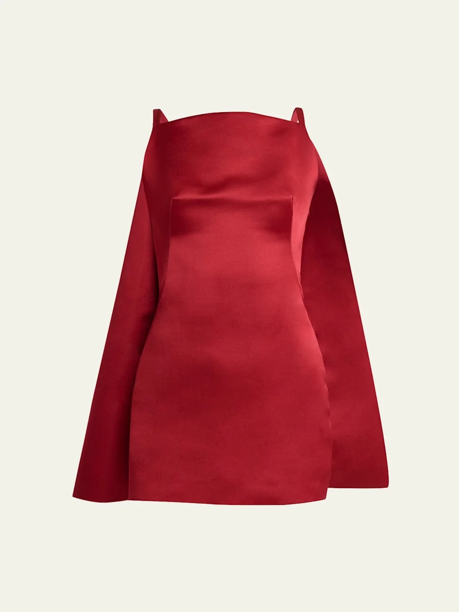 Crafted from silk satin, this Givenchy dress features a pleated back cape High neckline Sleeveless Sheath silhouette Mini length Invisible back zip Silk Lining: Acetate/silk Made in Italy