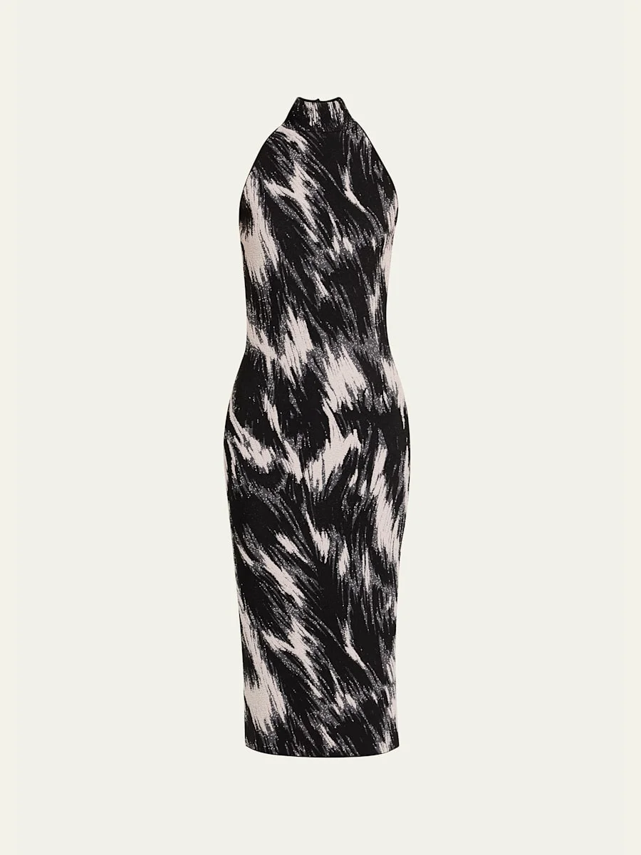 HALTERNECK DRESS IN ANIMAL JACQUARD VISCOSE