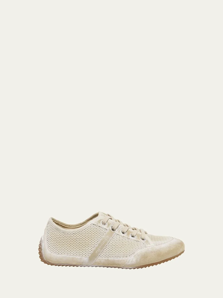 Givenchy low-top slim sneakers in distressed nylon and elastane mesh and leather Flat heel Round toe Lace-up vamp Logo debossed sides Rubber outsole Lining: Cotton Made in Italy Online Inquiries: BGS21_X6XYH| Store Inquiries: #5045814
