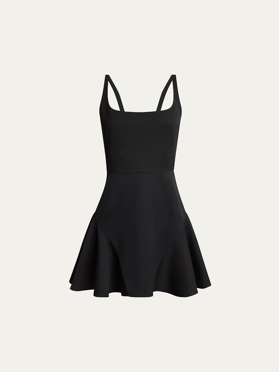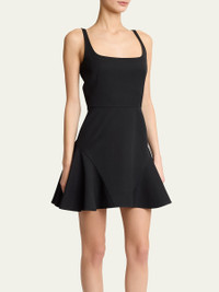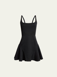 Givenchy fluted dress featuring a ruffle back hem Square neckline Sleeveless Waist seam Fi-and-flare silhouette Mini length Side zip Viscose/acetate/elastane Lining: Viscose Made in Italy Online Inquiries: BGS21_BA3FY| Store Inquiries: #5024772