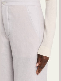 These God's True Cashmere pants are crafted in soft cashmere, decorated with a moonstone gemstone button known for love and wisdom Midrise sits high on the hips Flat front Side slant pockets Full length Straight legs Button/zip fly Cashmere Dry clean Made in Italy