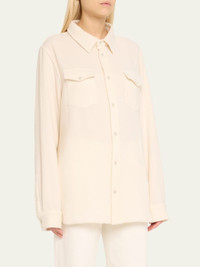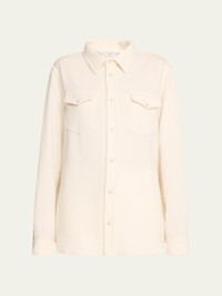 God's True Cashmere knit shirt Point collar; snap front closure Chest flap pockets with snap closures Long sleeves; snap cuffs Hip length Relaxed fit Cashmere Unlined Hand wash or dry clean Made in Italy